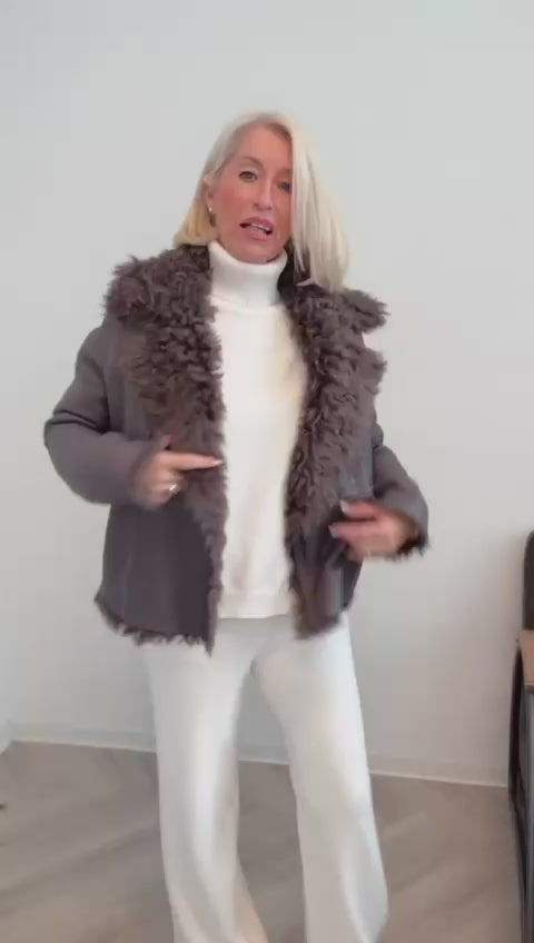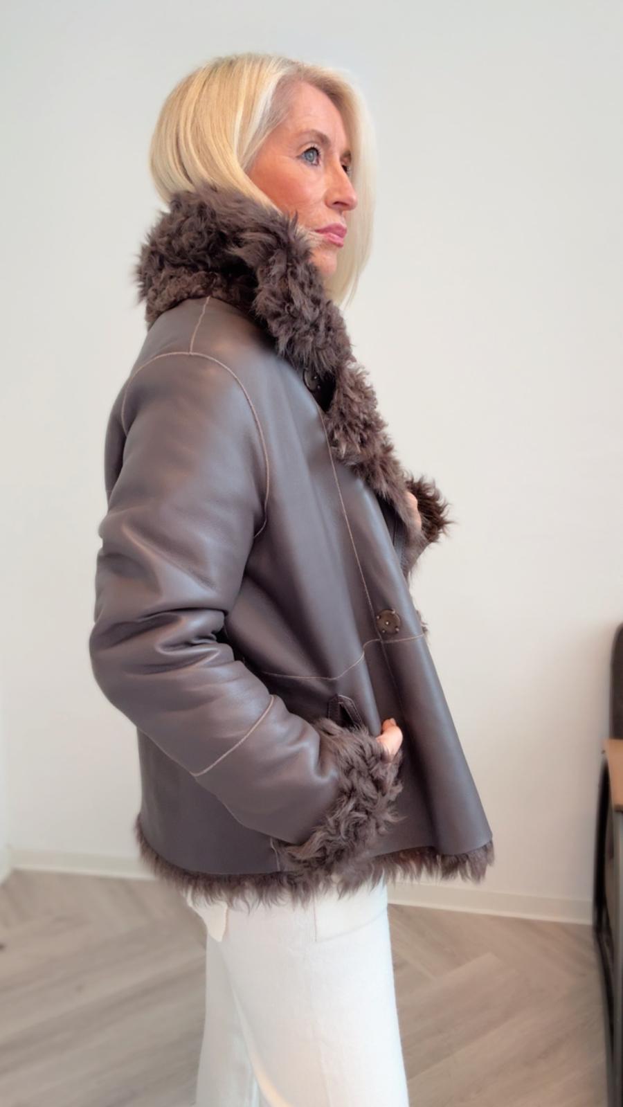 Lammfell Wende-Lederjacke "Amra" in taupe | BALATT