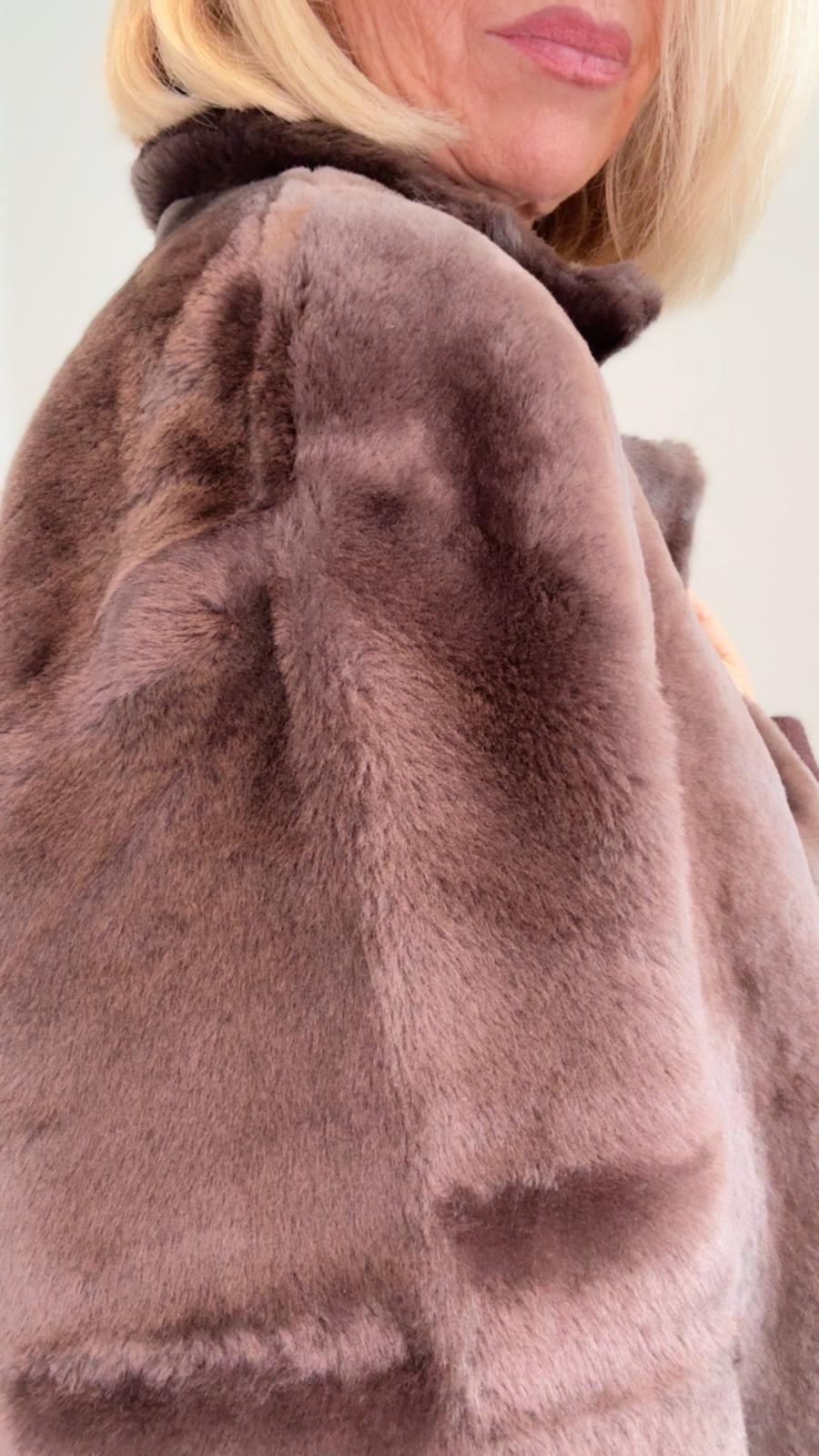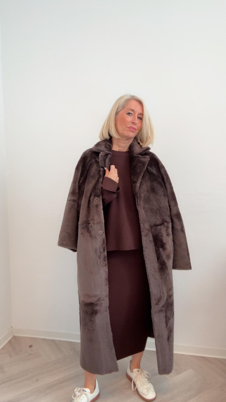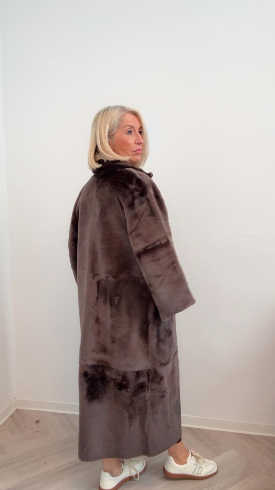 Lammfell Wende-Ledermantel "Corine" in taupe | BALATT