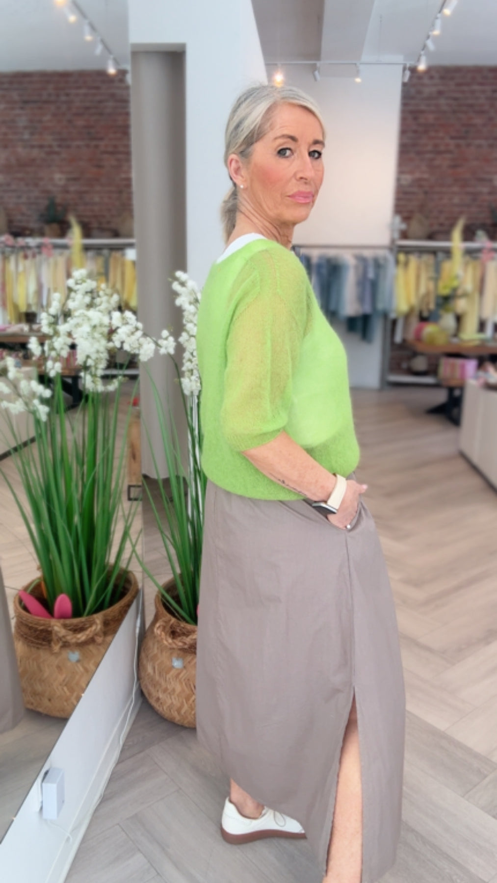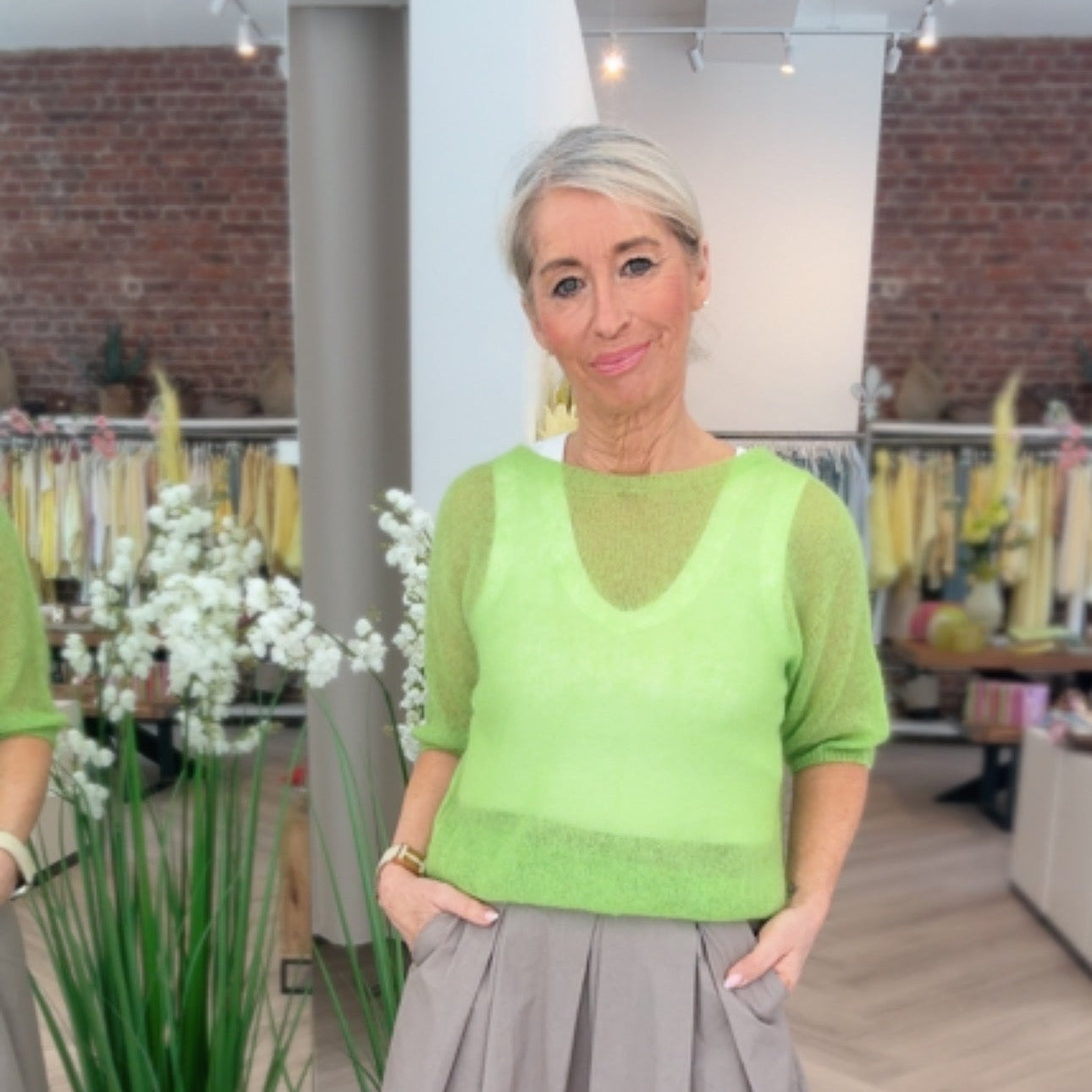 Angela ist 1,65m groß und trägt Kleidergröße s/35
